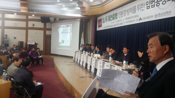 <사진1 : 지난해 국회에서 열린 소나무 재선충병 친환경 방제를 위한 입법공청회 (대덕바이오 제공)>